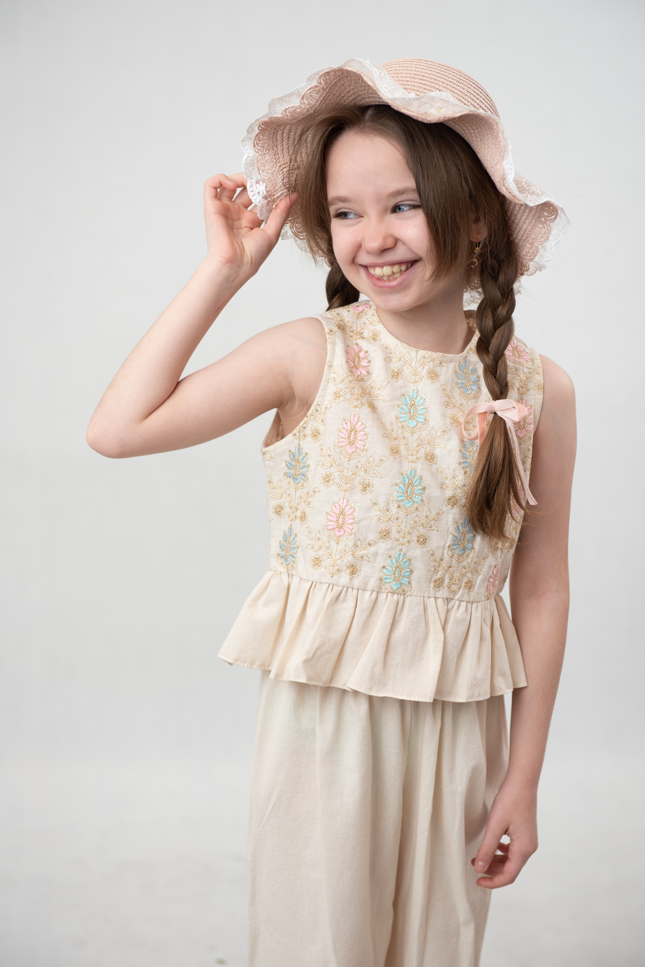 خرید تاپ و شلوار دخترانه حلما لینن نچرال هندی