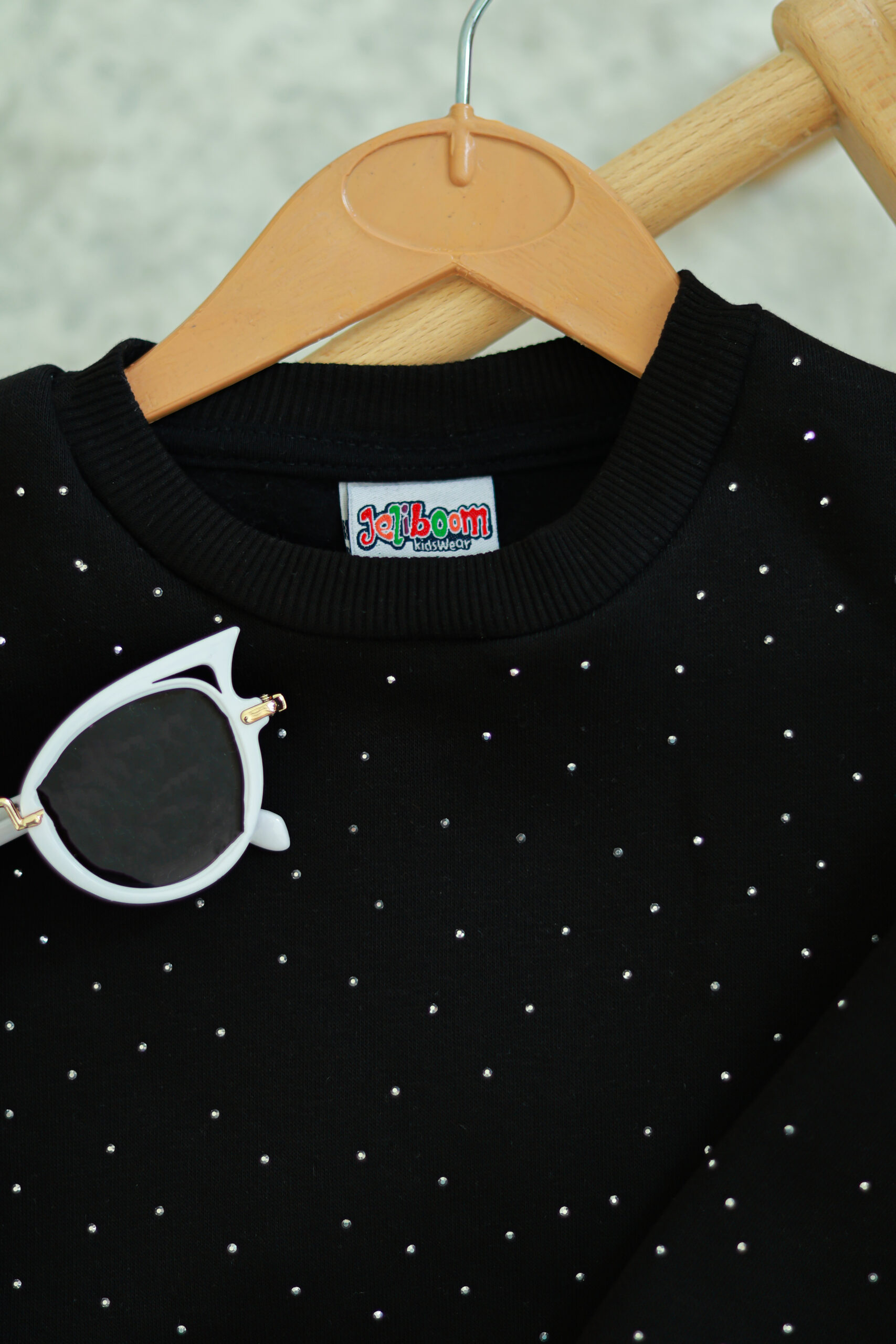 طراحی این ست به همراه نگین‌ های ظریف و درخشان، جلوه‌ای چشم‌ گیر ایجاد کرده و آن را به گزینه‌ ای عالی برای مهمانی‌ ها، دورهمی‌ ها و حتی استفاده روزمره تبدیل می‌ کند. رنگ مشکی ست علاوه بر جذابیت کلاسیک، به‌راحتی با انواع کفش و اکسسوری ست می‌ شود. این محصول برای دخترانی که به دنبال راحتی همراه با استایل خاص هستند، انتخابی ایده‌ آل است.