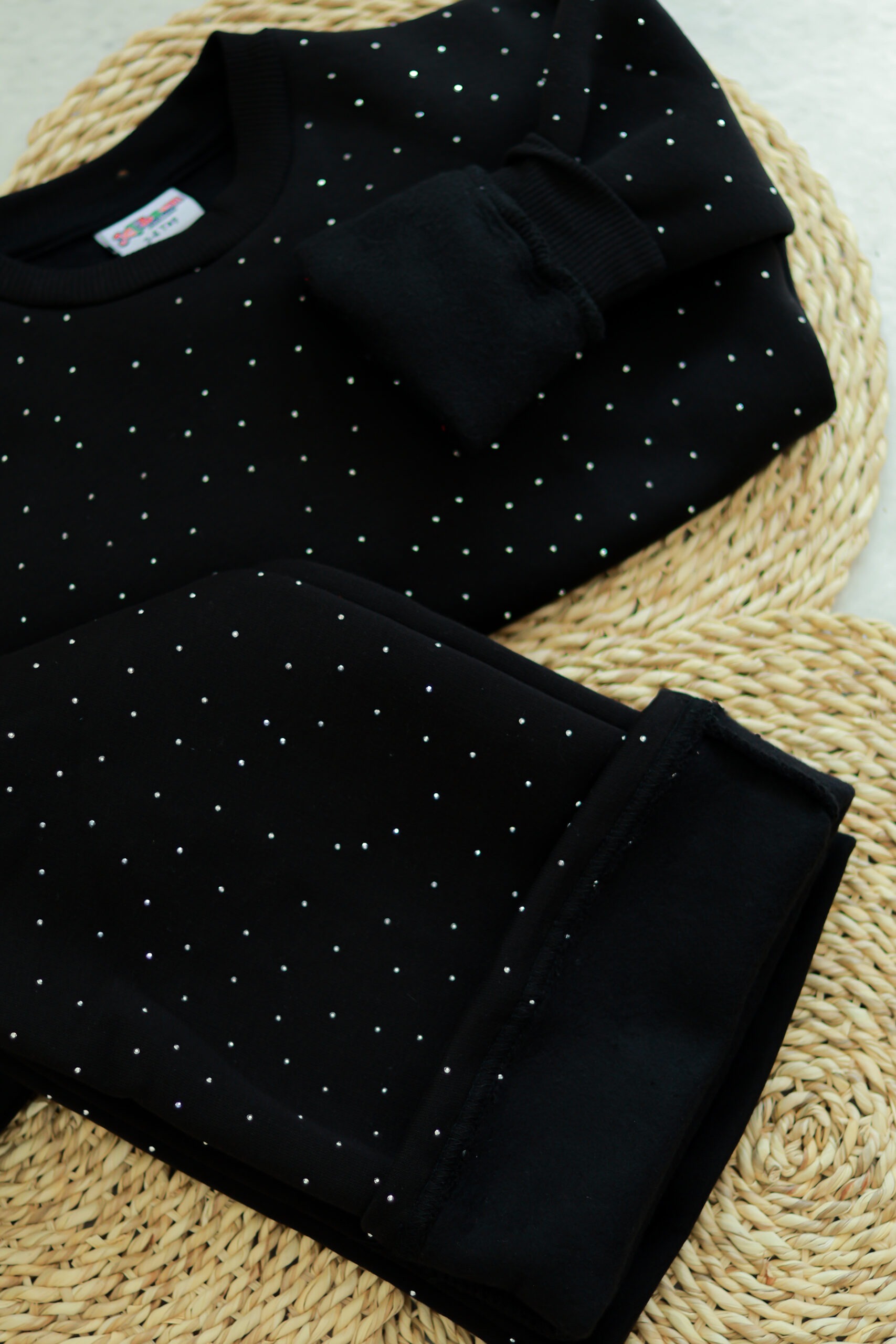 ست راحتی دخترانه مشکی نگین یکی از شیک‌ ترین و جذاب‌ ترین انتخاب‌ ها برای دخترانی است که به استایل خاص و متفاوت اهمیت می‌ دهند. این مدل وارداتی ترک بوده و به همین دلیل از نظر کیفیت دوخت، ظرافت طراحی و ماندگاری پارچه، در سطح بسیار بالایی قرار دارد. جنس کار توکرکی است و بافت نرم و لطیف آن باعث می‌ شود در فصل‌های خنک، بدن را گرم و راحت نگه دارد.