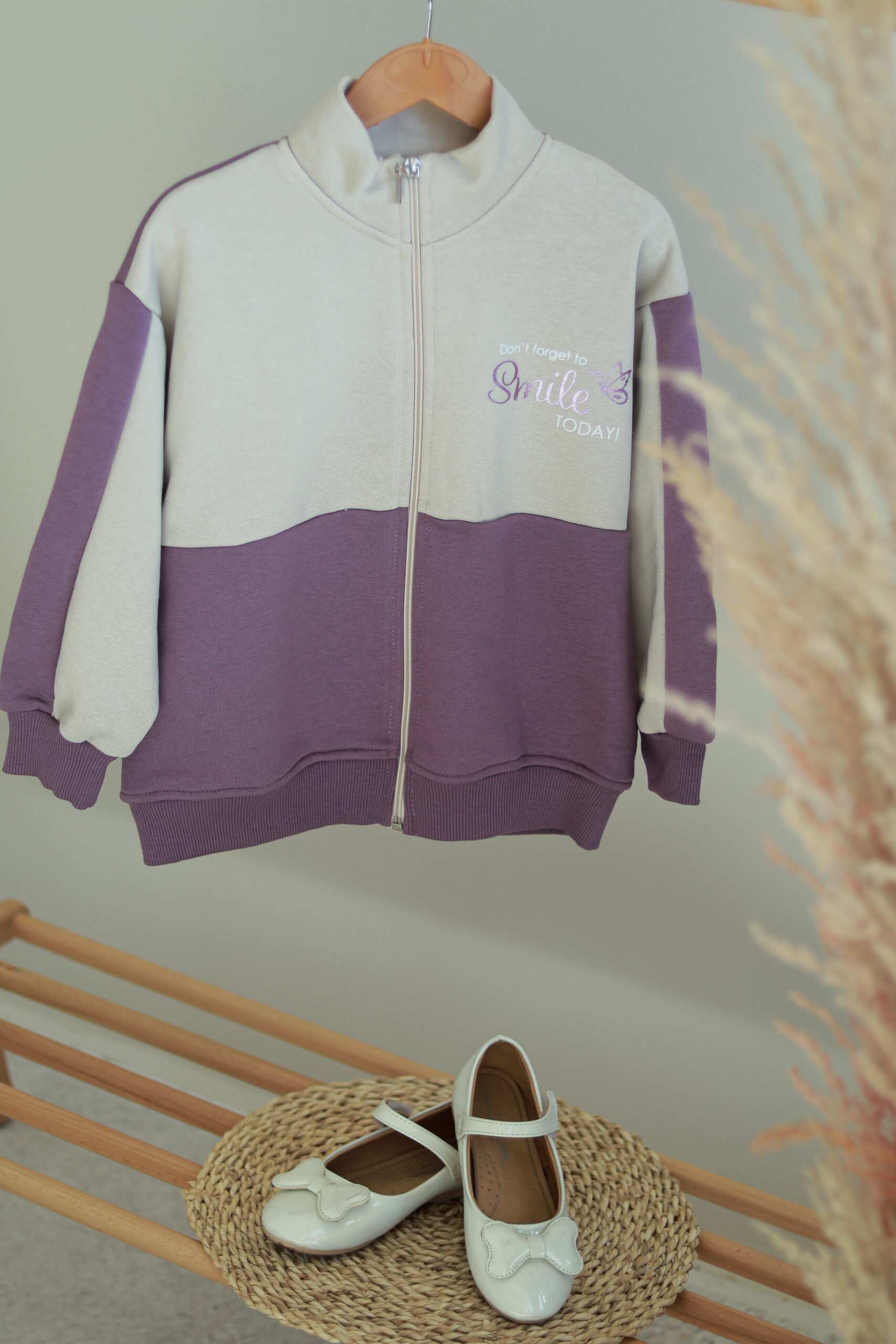 رنگ یاسی ملایم و جذاب این ست، حس شادی و انرژی را به کودک منتقل می‌کند و با طراحی شاد و دوست‌داشتنی، محبوب دختران خواهد بود. ست سوشرت و شلوار اسمایل، ترکیبی از راحتی، کیفیت و زیبایی است که هر دختری دوست دارد در کمد لباس خود داشته باشد.