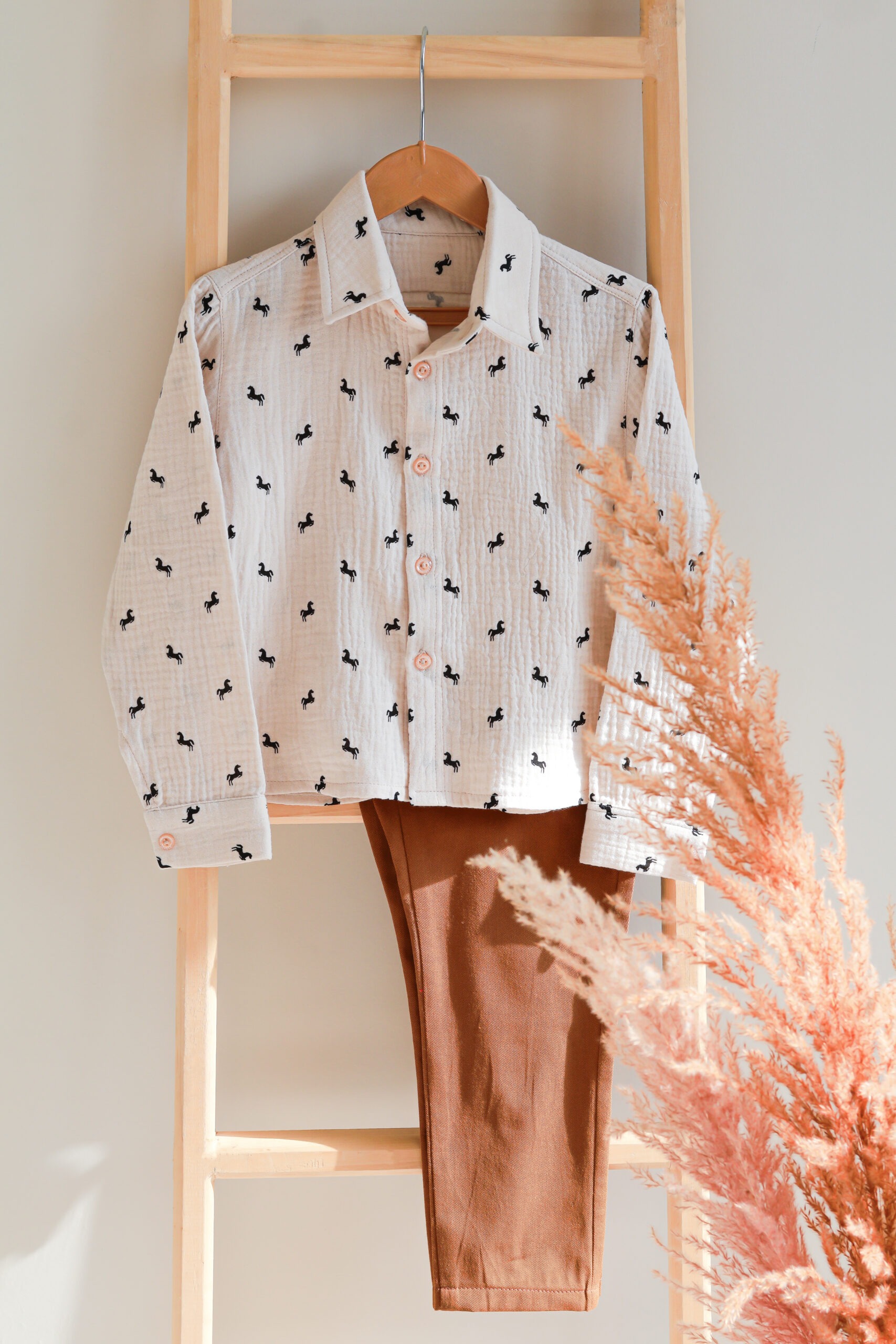 ست پیراهن و شلوار پسرانه هورس یک انتخاب شیک و راحت برای استفاده روزمره و مهمانی ها است. پیراهن از جنس موسلین تولید شده و به دلیل لطافت و نرمی بالا، پوششی راحت و مناسب برای پوست حساس کودکان فراهم می کند. شلوار از جنس کتان با کیفیت بالا دوخته شده و دوام و مقاومت خوبی دارد.