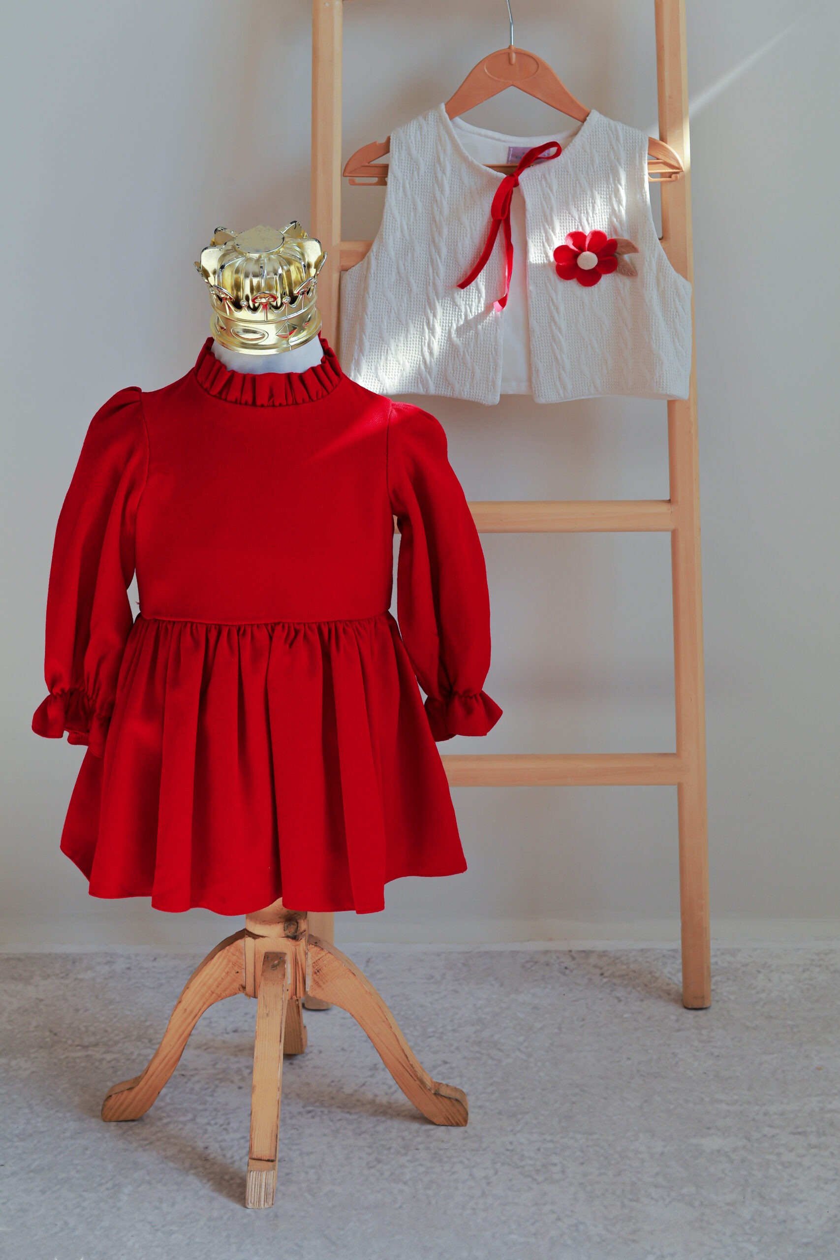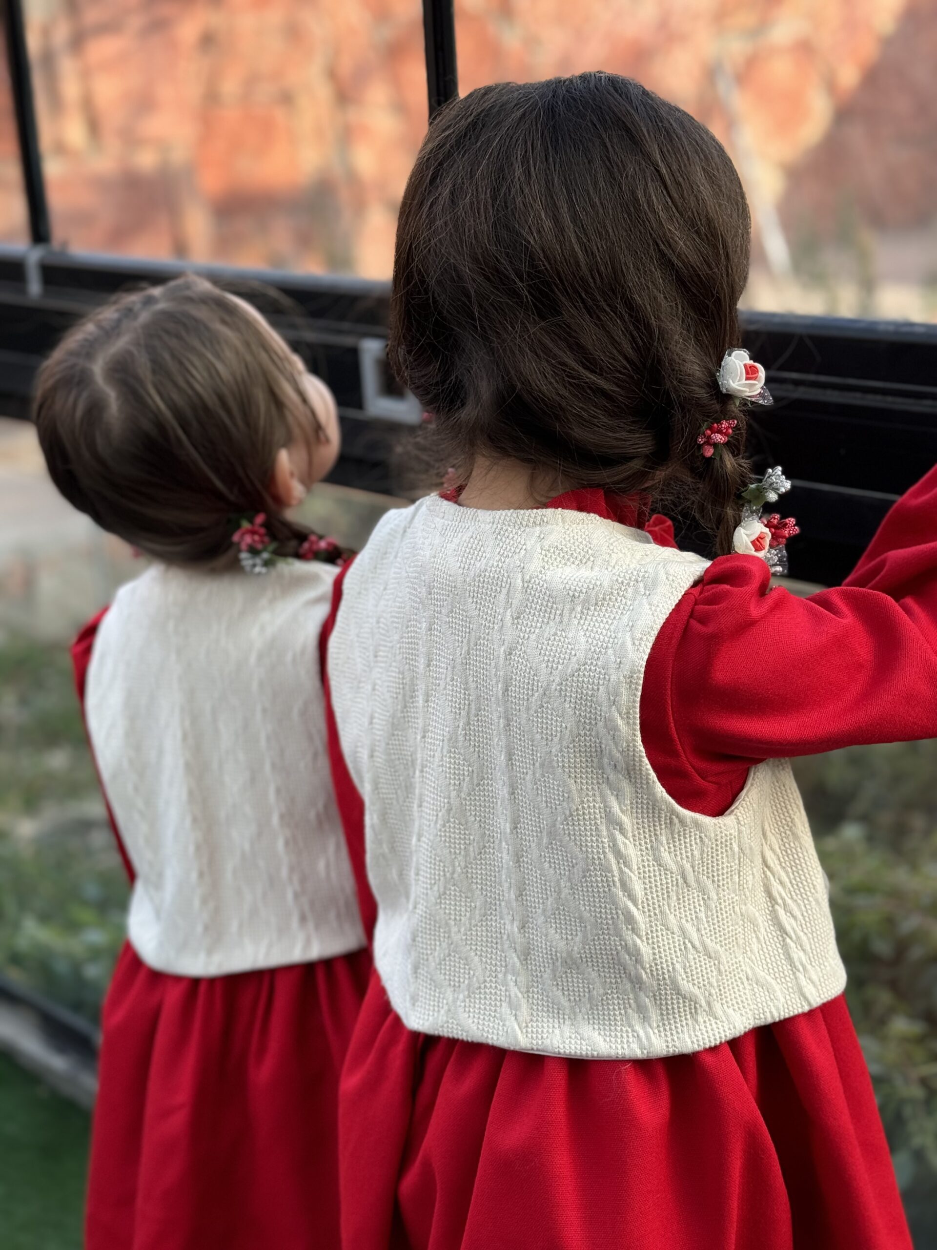 این ست دخترانه با ترکیب کت بافت و پیراهن نرم کشمیر، ظاهری بسیار شیک و کودکانه ایجاد می‌ کند. رنگ و بافت لباس‌ها کاملاً هماهنگ طراحی شده‌ اند تا استایلی رسمی، مرتب و چشمگیر برای دختر دلبند شما بسازند.