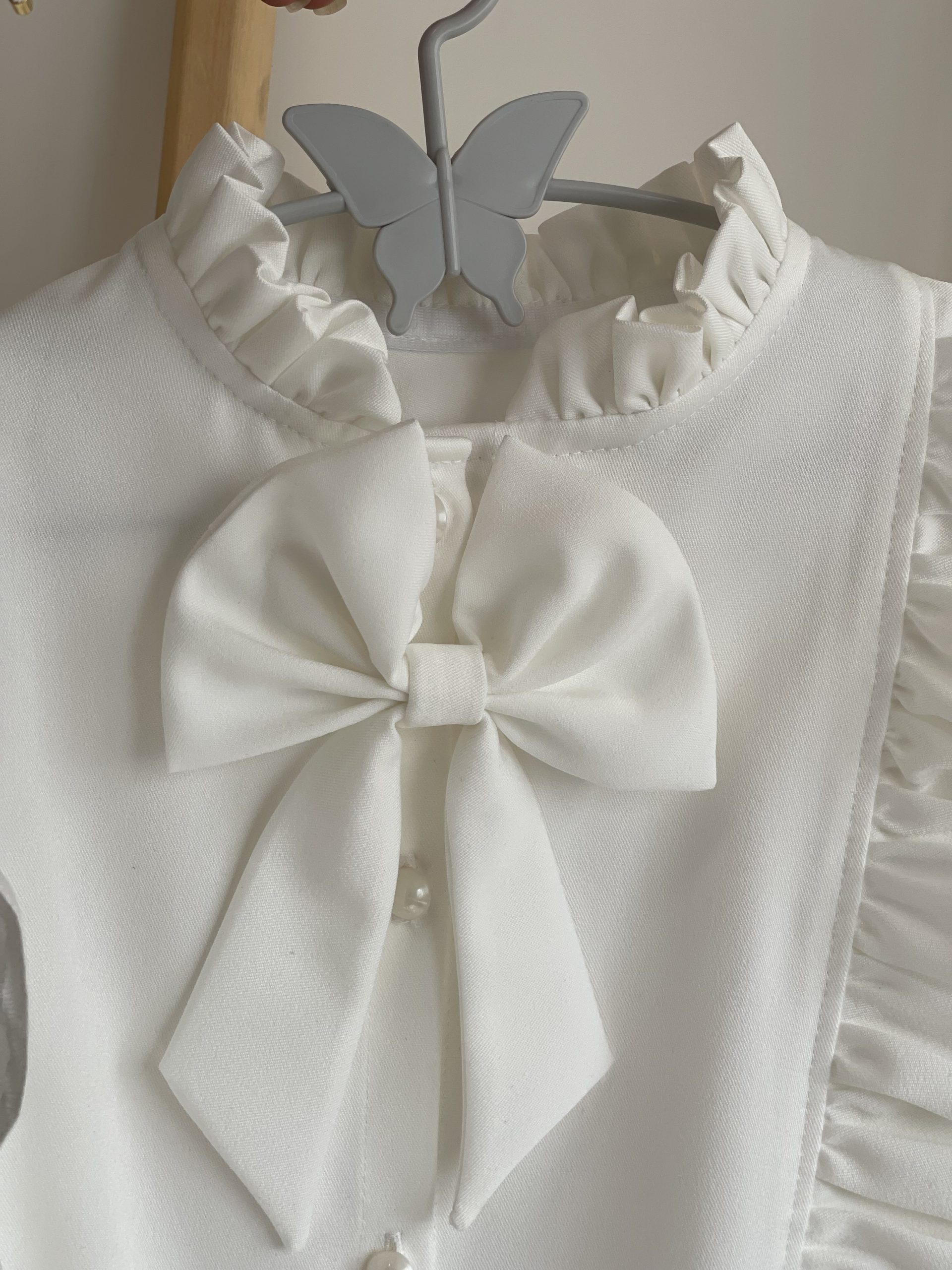 شومیز دخترانه غزل با پارچه کرپ سبک و خوش‌فرم دوخته شده و انتخابی مناسب برای استایل‌های نیمه‌رسمی، مهمانی‌ها یا حتی استفاده روزمره است. این مدل فاقد آستر بوده و با طراحی مینیمال و ساده‌اش حس راحتی و آزادی حرکت را برای کودک فراهم می‌کند. پاپیون این شومیز با سنجاق نصب شده و به‌راحتی قابل جدا شدن است، تا بتوان از شومیز در استایل‌های مختلف استفاده کرد.