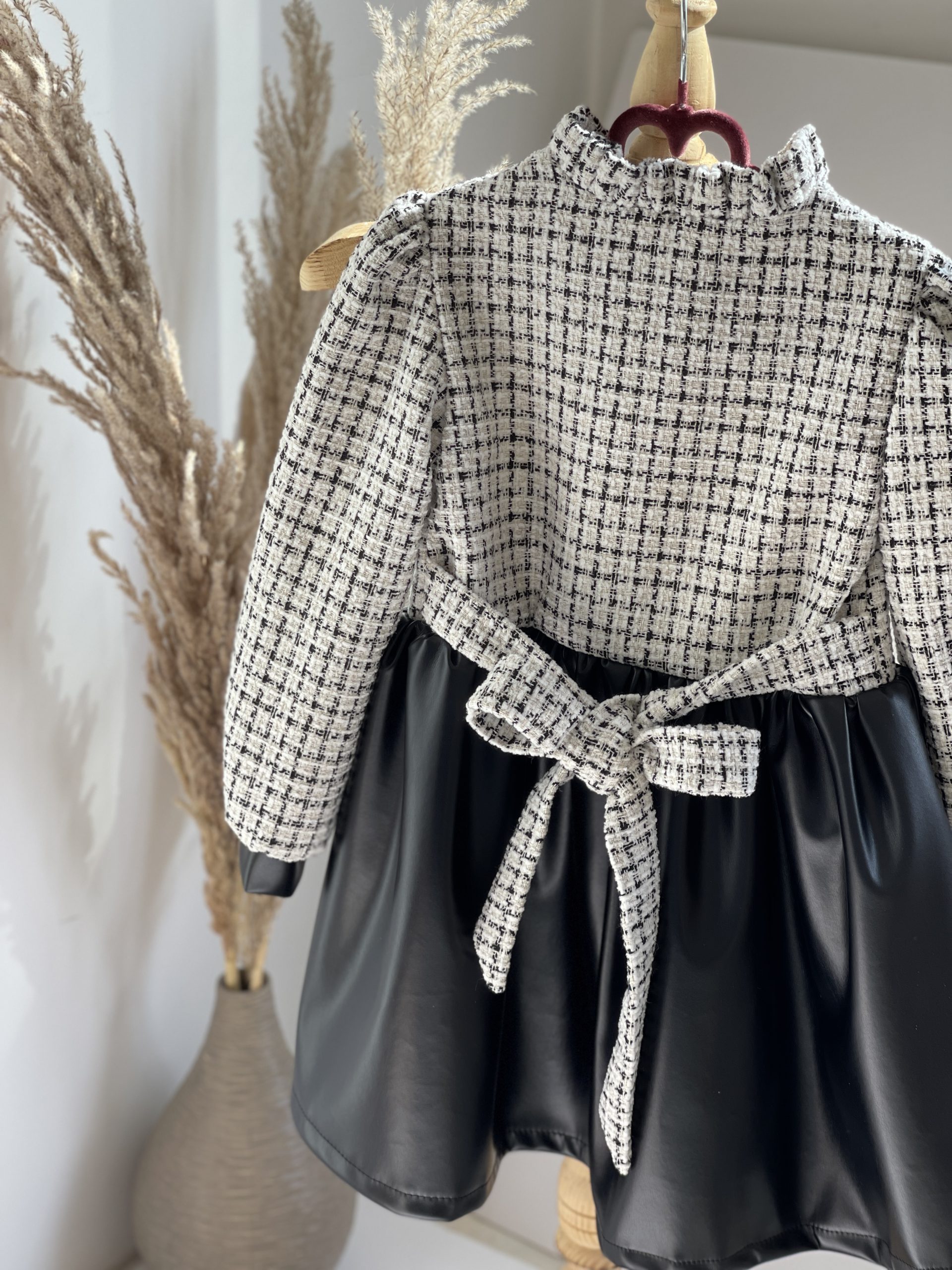 پیراهن دخترانه آرنیکا با طراحی خاص، بالا تنه شنل مخملی و دامن چرم مصنوعی، انتخابی ایدهآل برای دختران است. این پیراهن با آسترکشی کامل و رنگ مشکی کلاسیک، جلوهای زیبا و مدرن به استایل کودک میبخشد. این مدل مناسب برای مهمانیها، مراسمهای خاص و فصلهای سرد است و راحتی را در کنار شیک بودن ارائه میدهد.