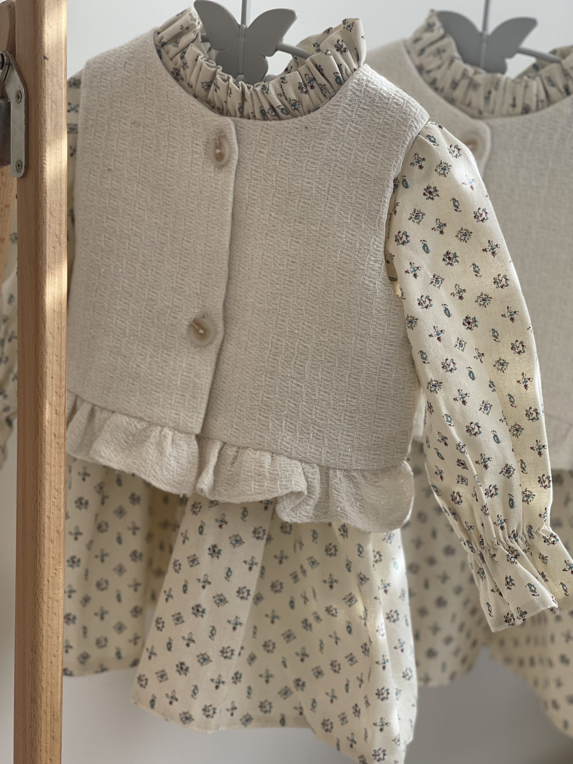 کت این ست از پارچه شنل لطیف دوخته شده که ظاهر مجلسیتری به استایل کودک میبخشد و در عین حال کاملاً راحت و قابل استفاده در فصول معتدل است.