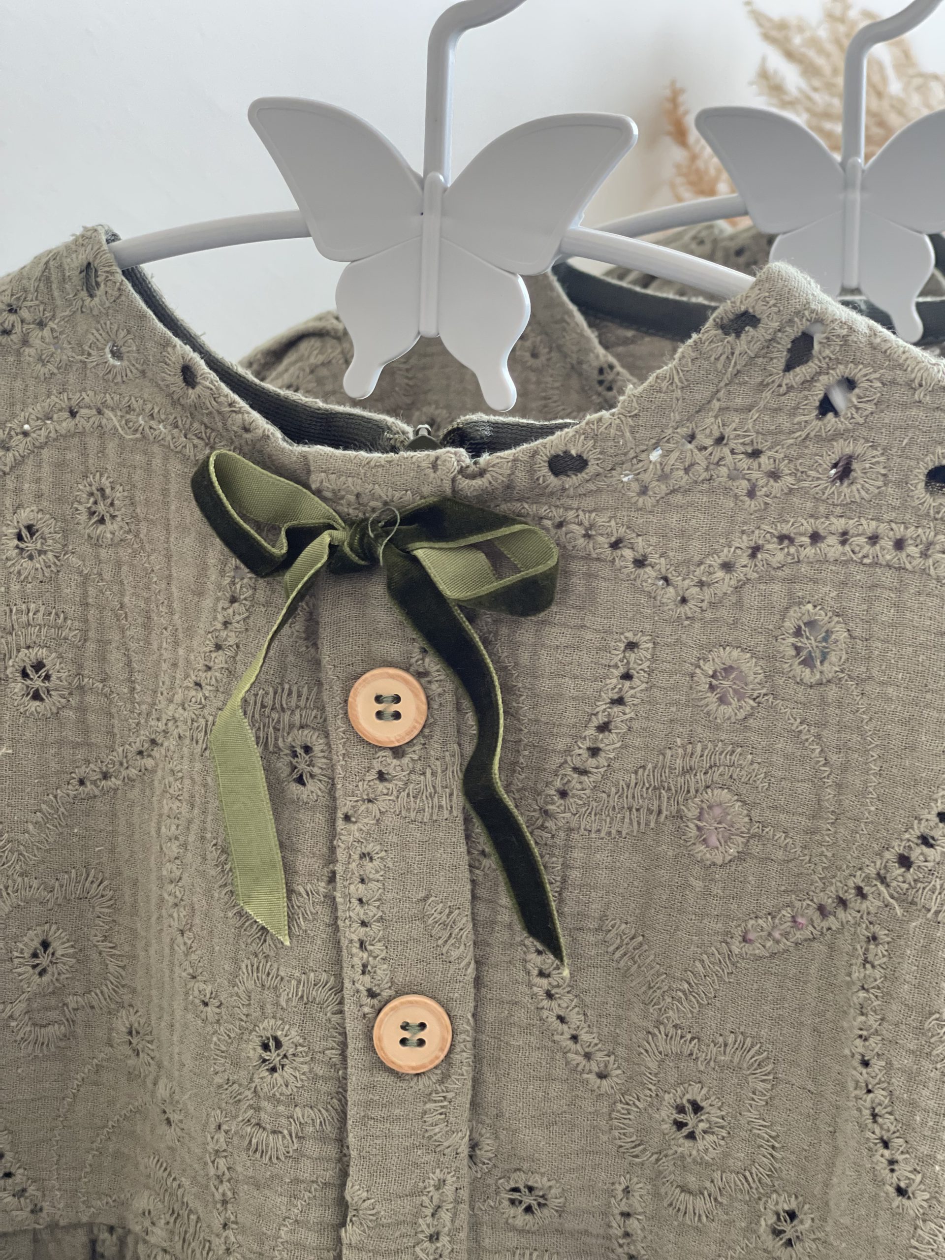 پیراهن کودک دخترانه پیراهن رستای سبز از جنس موسلین تمام نخ با گلدوزی‌های زیبا، یک انتخاب ایده‌آل برای کودکان خوش‌سلیقه است. این پارچه بسیار نرم، لطیف و تنفس‌پذیر بوده و مناسب پوست حساس کودکان طراحی شده است. این پیراهن کودکانه فاقد آستر می‌باشد.