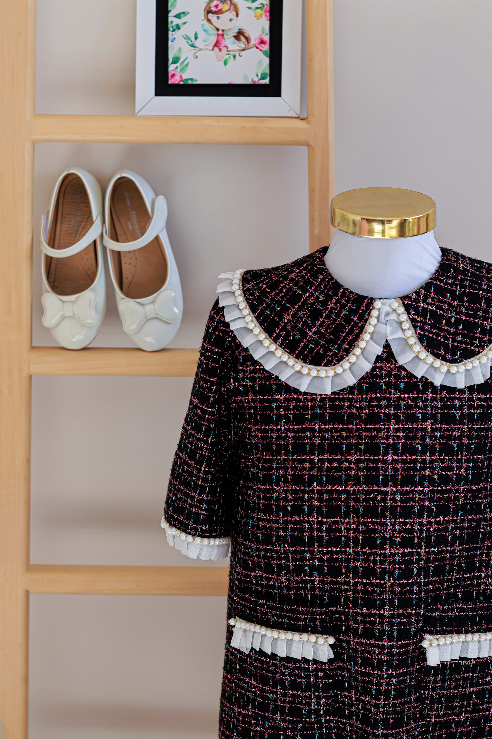 - دور یقه و سر آستین ها و جیب ها خرجکار مرواریدی کار شده.
