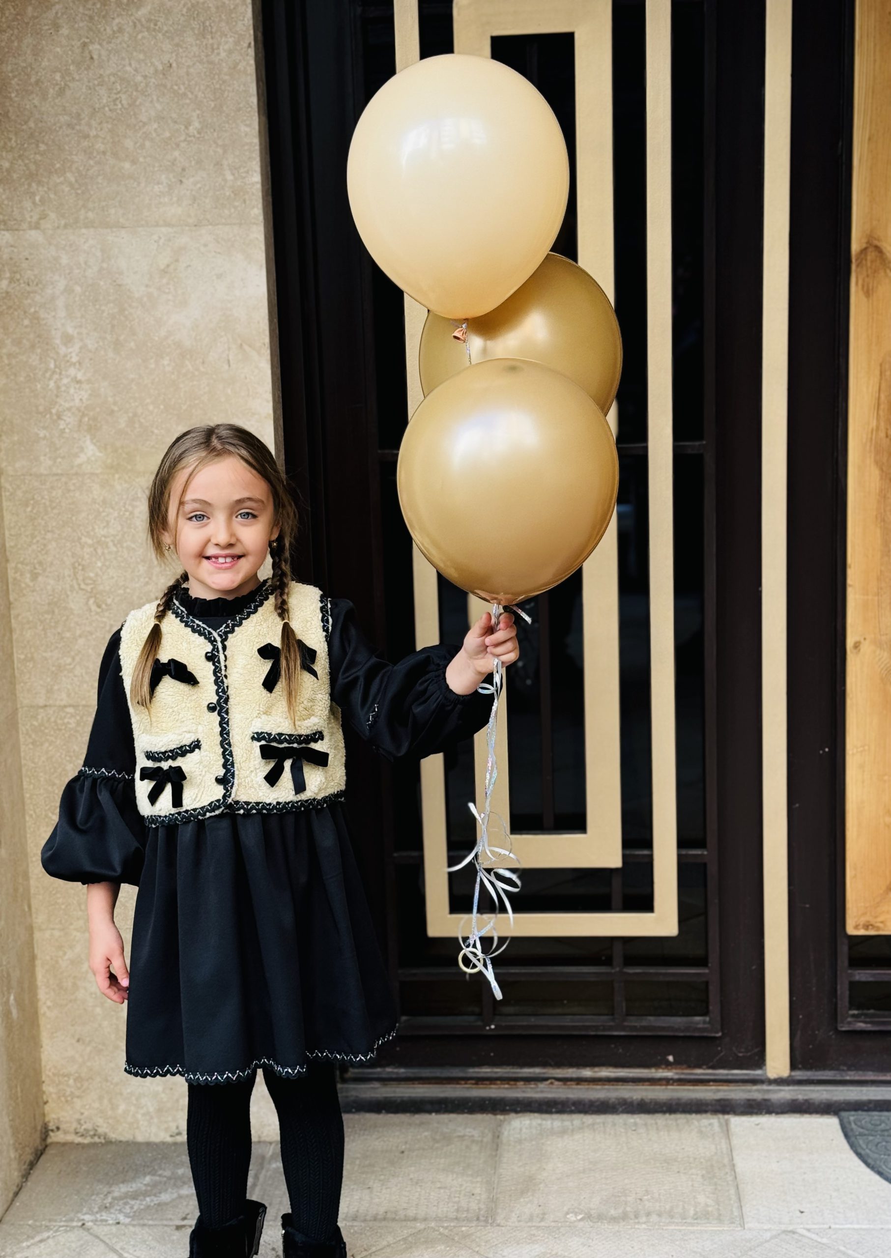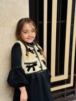پیراهن دخترانه مشکی حنا با پارچهی کرپ اعلا و طراحی کلاسیک، انتخابی شیک برای مناسبتها و مهمانیهای رسمی است. قسمت پشت لباس دارای زیپ مخفی برای راحتی در پوشیدن است و جلیقه خزدار آن جلوهای خاص و لوکس به استایل کودک شما میبخشد. ترکیب رنگ مشکی با خز، این مدل را به گزینهای منحصربهفرد برای استایلهای مجلسی تبدیل کرده است.