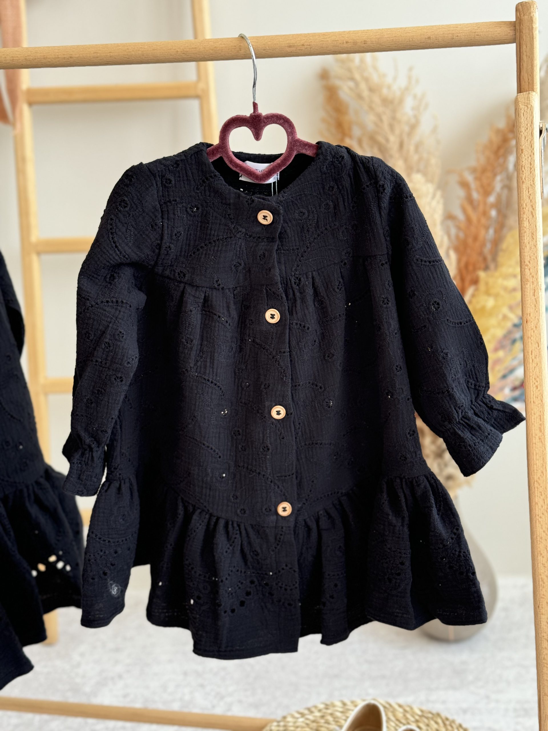 پیراهن مشکی مائده از جنس موسلین گلدوزی شده هست.