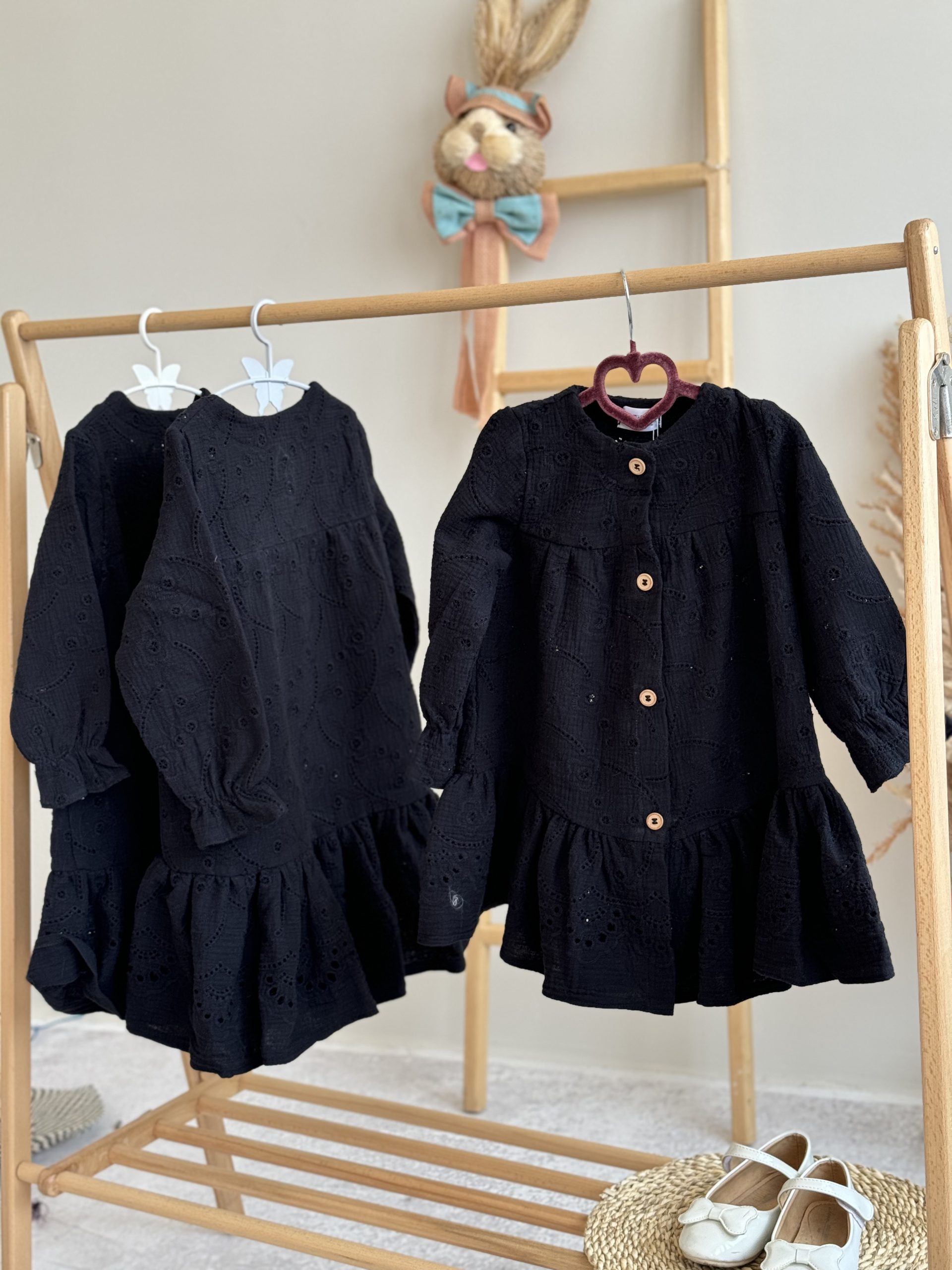 این پیراهن از پارچه موسلین با کیفیت بالا تهیه شده که جلوه‌ای زیبا و مدرن به استایل کودک می‌بخشد.