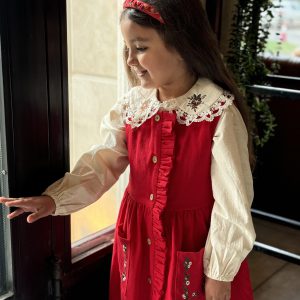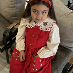 خرید پیراهن دخترانه مونس سرمهای لینن کرکی و مخمل کبریتی