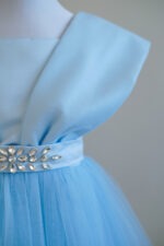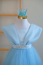 پیراهن پرنسسی فرحناز آبی یک انتخاب مجلسی و چشم نواز برای دخترانی است که به لباس های شیک و خاص علاقه دارند. رنگ آبی لطیف این پیراهن، جلوه ای آرام و در عین حال لوکس به استایل کودک می دهد و آن را به گزینه ای مناسب برای جشن ها، مهمانی ها و مراسم رسمی تبدیل می کند.