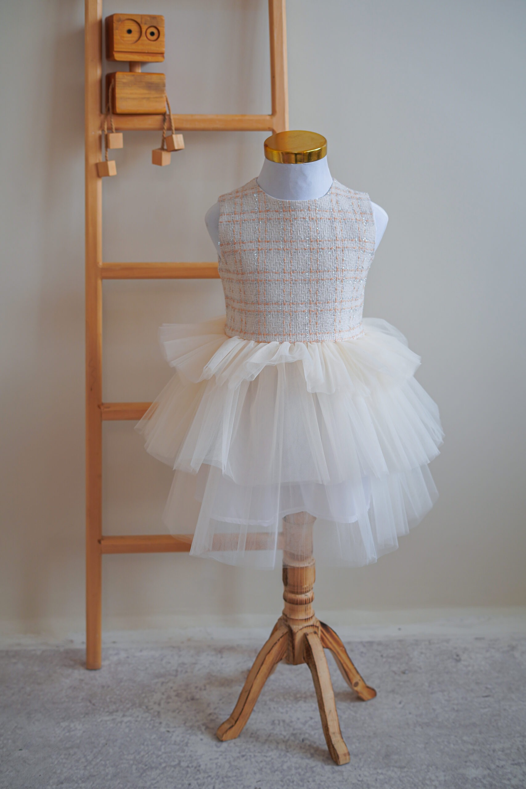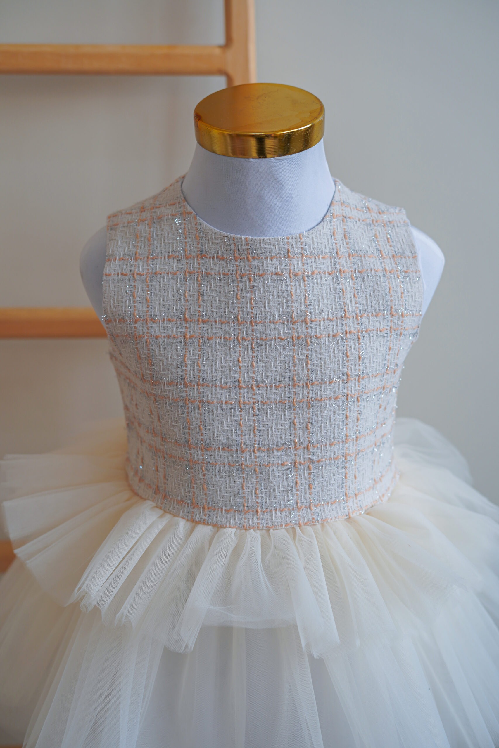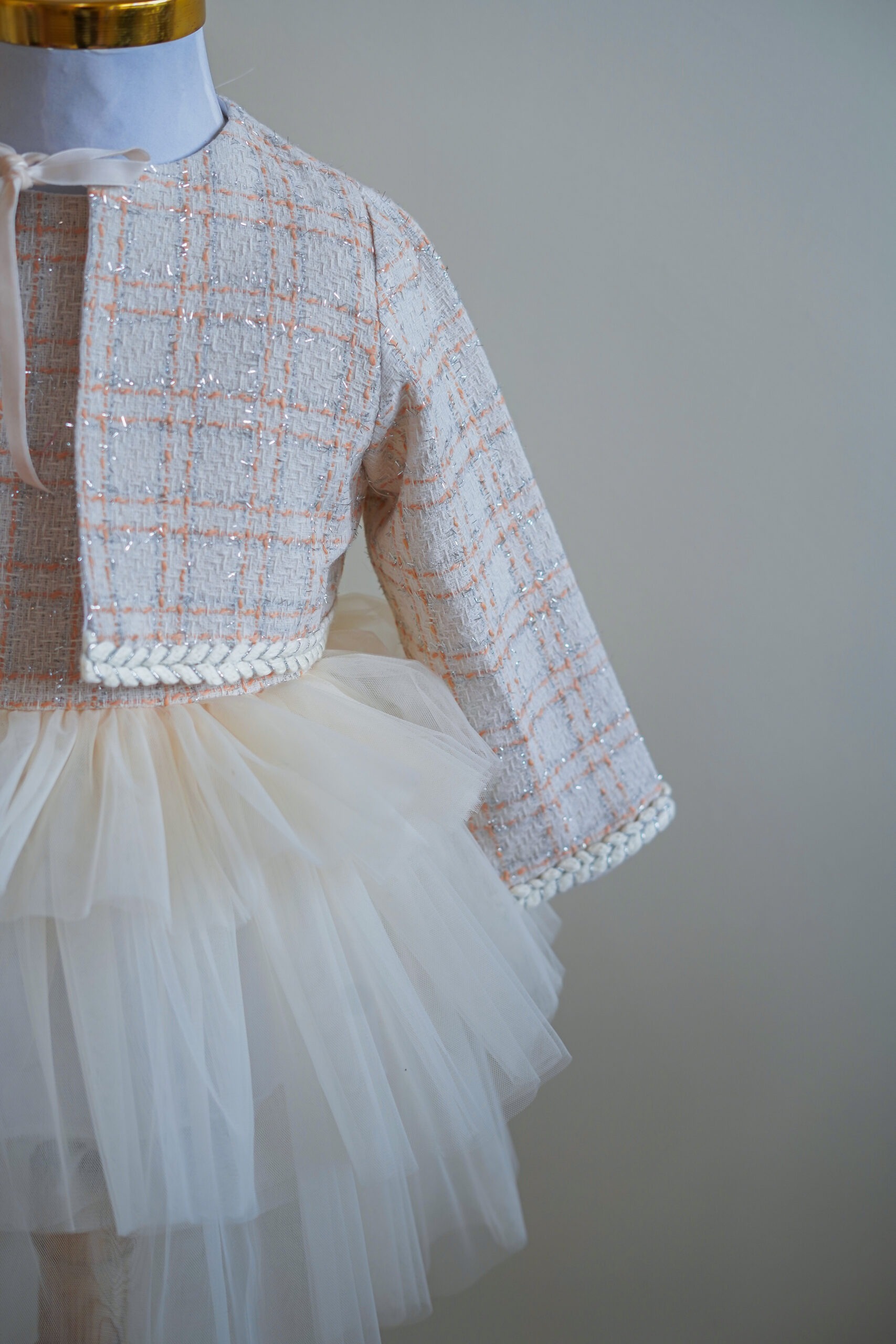• برای قسمت دامن سه طبقه تور طراحی شده.