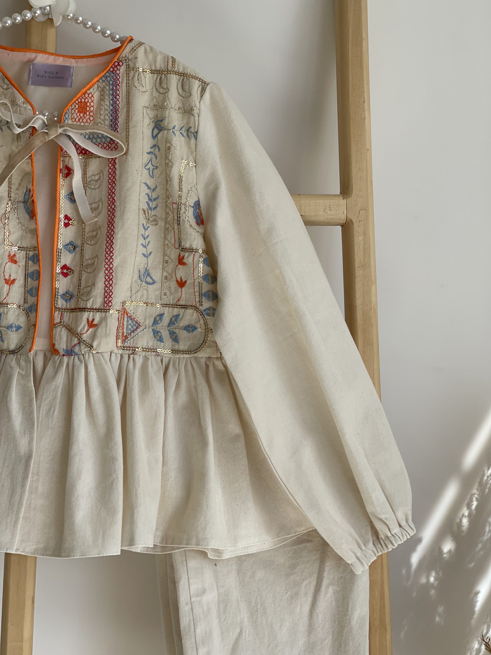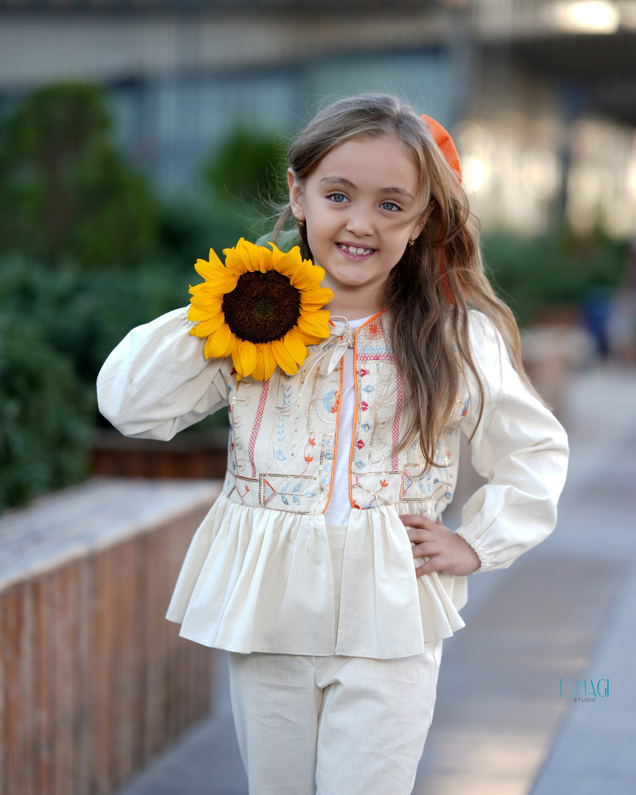 کت و شلوار دخترانه زمرد با استفاده از پارچه لینن نچرال هند و سوزندوزیهای ظریف طراحی شده که تلفیقی از سبک خاص، کیفیت بالا و هنر سنتی را ارائه میدهد. این ست خاص، مناسب مراسم رسمی، جشنها و مناسبتهایی است که به دنبال استایلی متفاوت و خاص برای کودک خود هستید. جهت حفظ کیفیت پارچه، شستشو تنها با آب سرد (صفر درجه) انجام شود و تحویل به خشکشویی پیشنهاد میگردد.