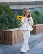 خرید کت و شلوار دخترانه زمرد ترکیب شیک لینن نچرال هند و سوزندوزی سنتی